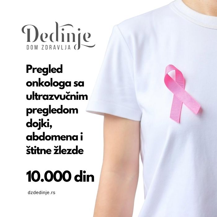 Povodom meseca borbe protiv raka dojke pripremili smo specijalnu ponudu - Pregled onkologa sa ultrazvučnim pregledom dojki, abdomena i štitne žlezde po promo ceni od 10,000 din.